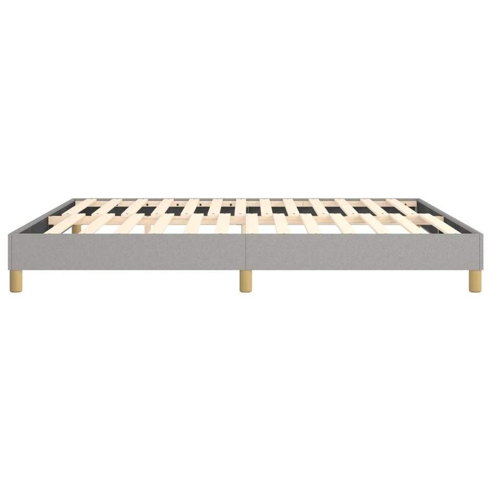 โครงเตียงหุ้มผ้าโพลีเอสเตอร์สีเทาอ่อน ทำจากไม้อัดวิศวกรรม ดีไซน์ทันสมัย