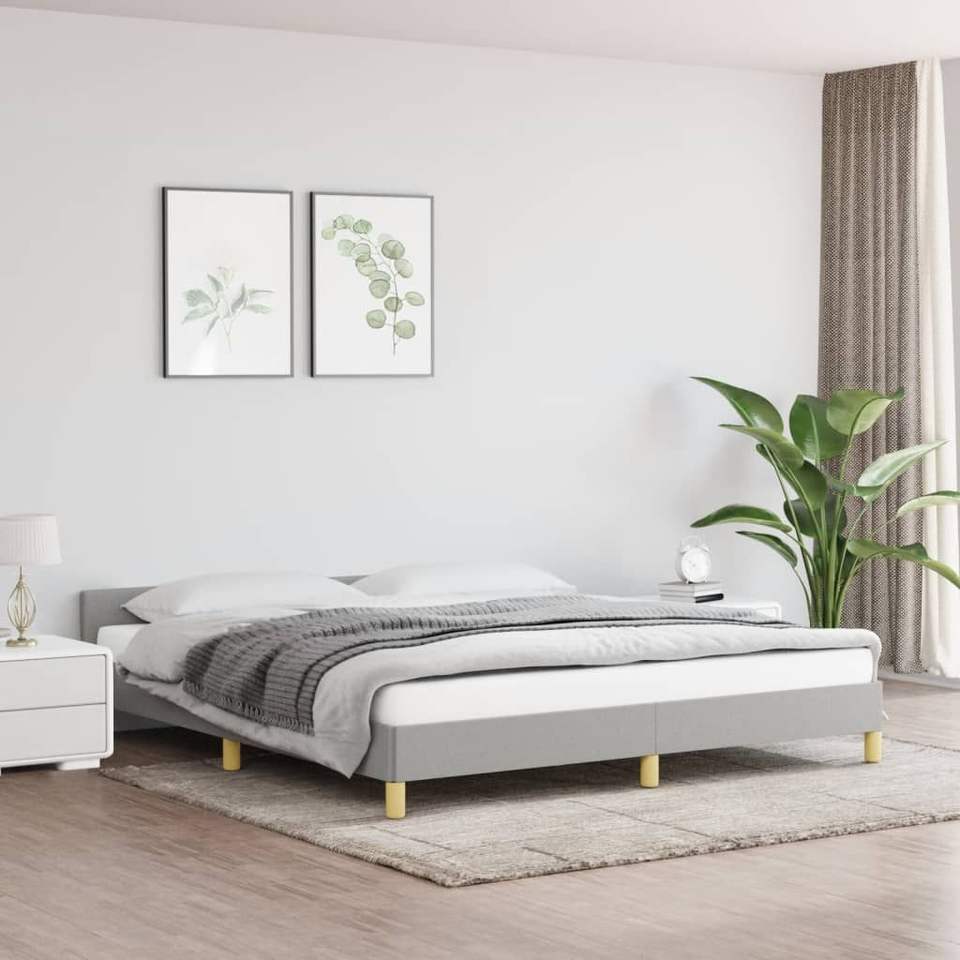 โครงเตียงหุ้มเบาะสีเทาอ่อนพร้อมหัวเตียง