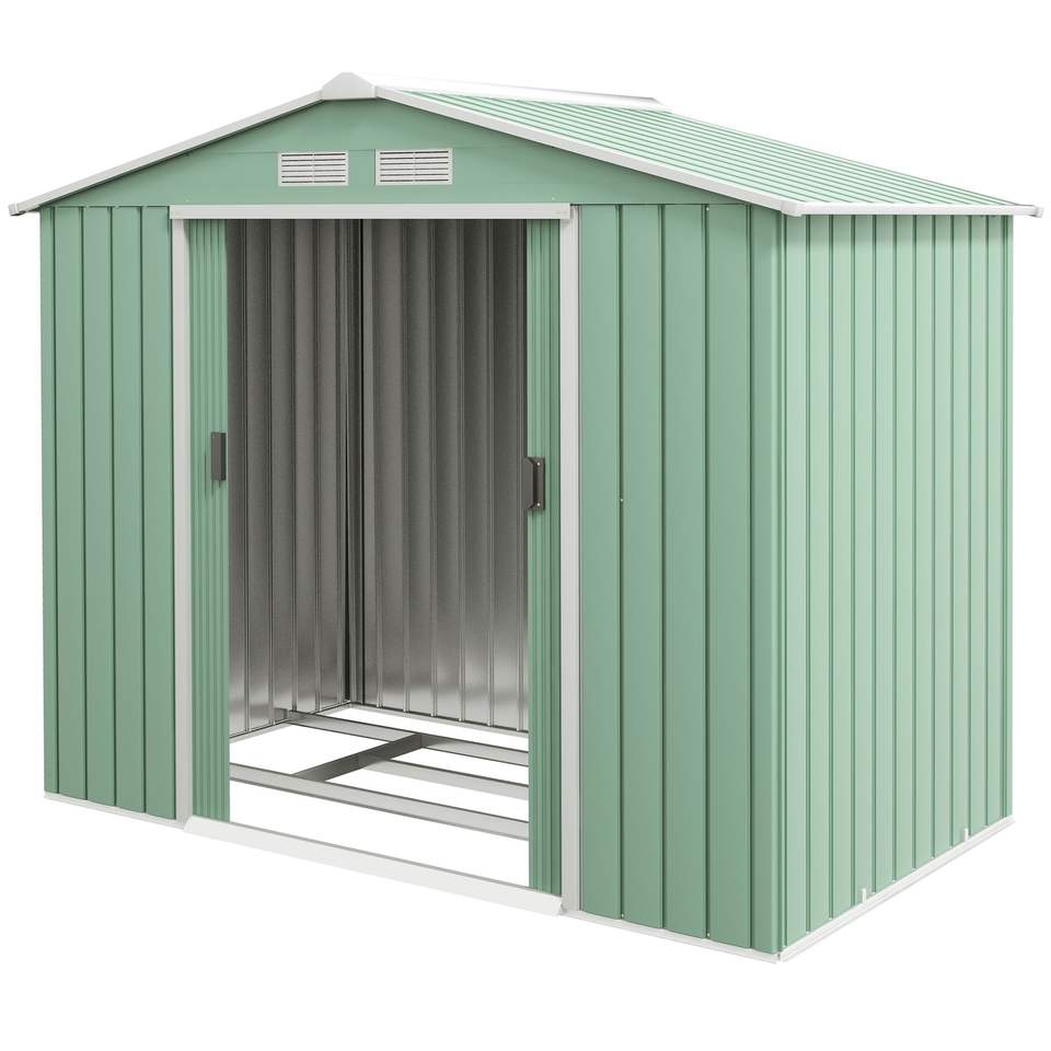 Light Green 7' X 4' Outdoor Storage Shed with Foundation Sliding Doors & Vents for Garden Tools for Backyard Patio Lawn