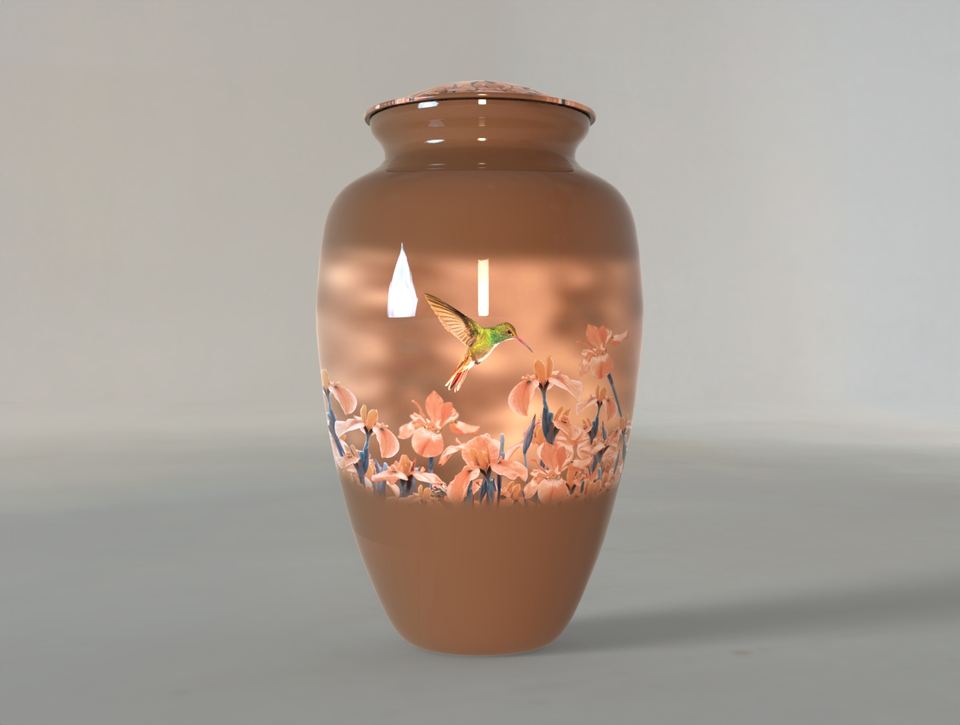 Humminmgbird โกศเผาศพโลหะสีเขียวอ่อนพร้อมถุงกำมะหยี่สำหรับผู้ใหญ่ขี้เถ้า