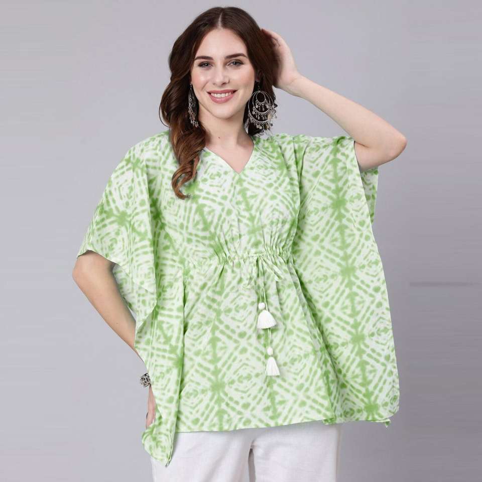 ชุดเดรสผ้าคอตตอนพิมพ์ลายมัดย้อมสีเขียวอ่อนชุดเดรสคาฟตันผ้าคอตตอนพิมพ์ลายฤดูร้อนสุดหรูหราออกแบบได้ตามต้องการสำหรับคลับฟรีไซส์