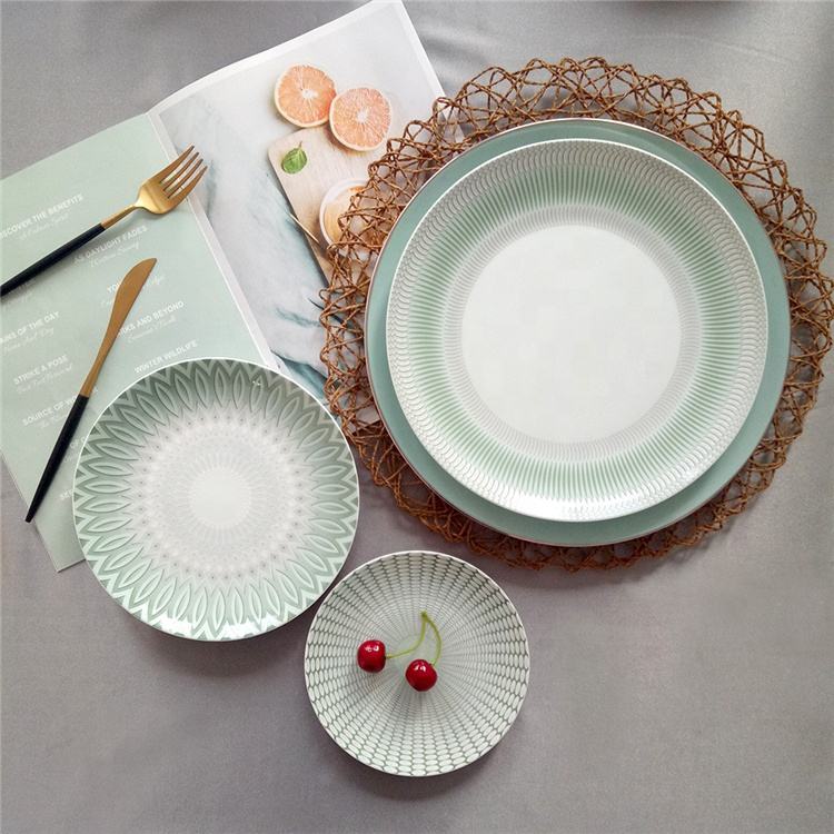 จานชามเซรามิกงานปาร์ตี้เครื่องลายครามตุรกีสไตล์วินเทจสีเขียวอ่อน
