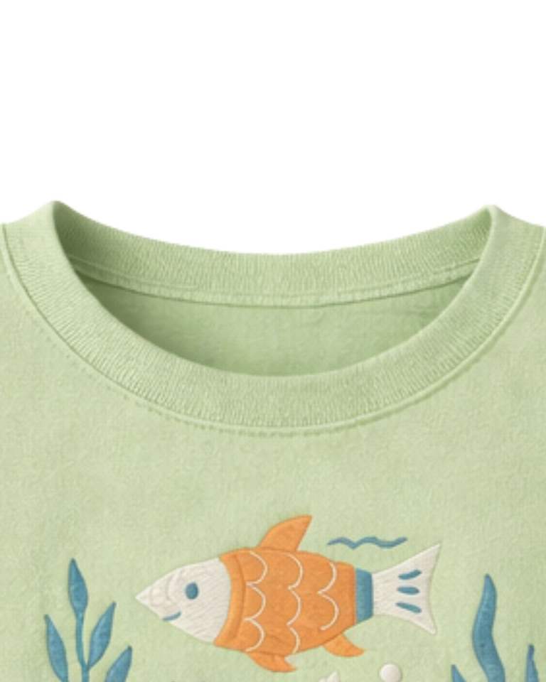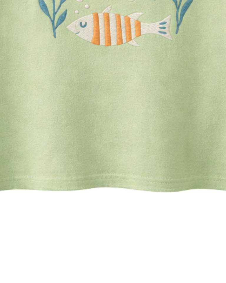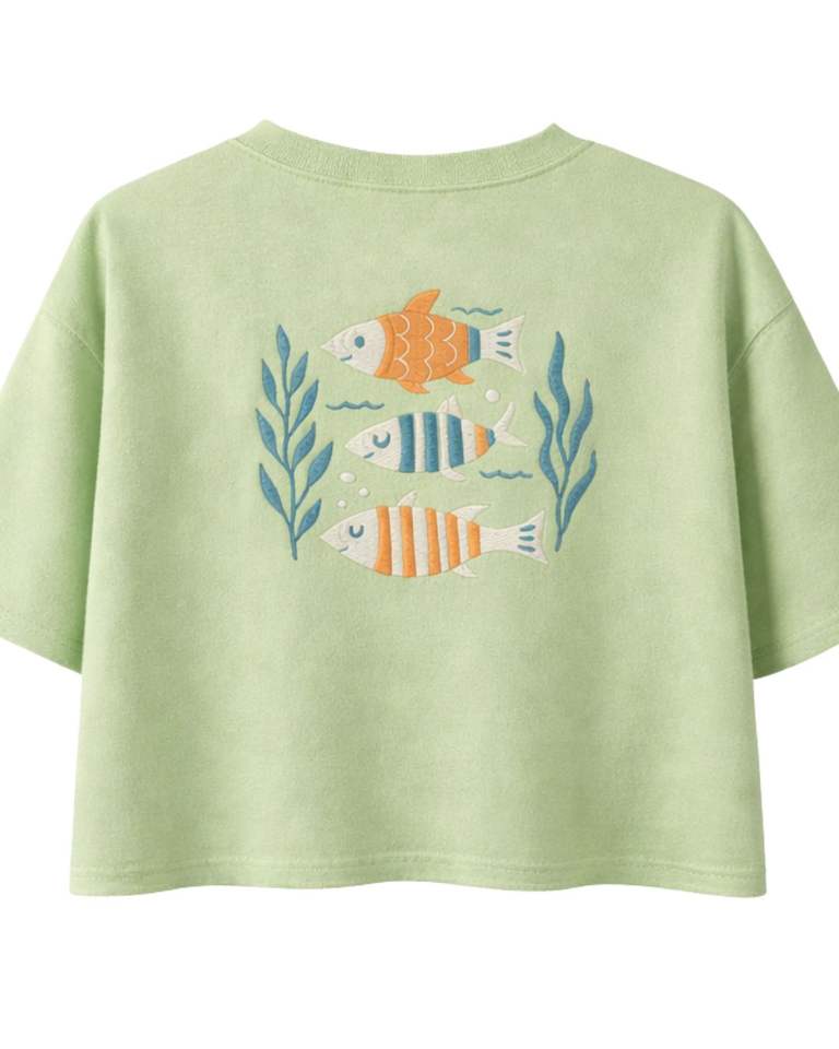 เสื้อยืดครอปพิมพ์ลายปลาสีเขียวอ่อนสำหรับผู้หญิง ผ้าฝ้าย แขนสั้น สไตล์ลำลอง เสื้อฤดูร้อนทรงหลวม แฟชั่นเสื้อยืดลายกราฟิก ขายส่งเสื้อผ้า