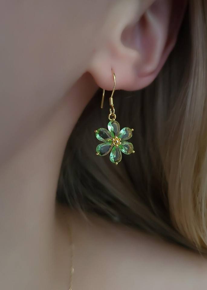 คำหลัก:ต่างหูเพทาย ประดับพลอยสีเขียวระยิบระยับ ต่างหูเงิน 925