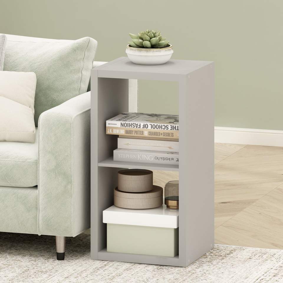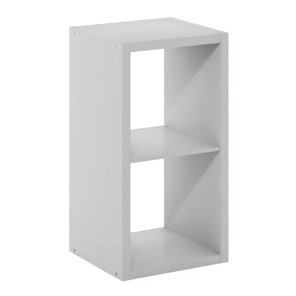 กล่องเก็บของทรงลูกบาศก์สีเทาอ่อน 2 ช่อง แบบเปิดด้านหลัง สำหรับตกแต่ง กล่องเก็บของทรงลูกบาศก์ทันสมัย