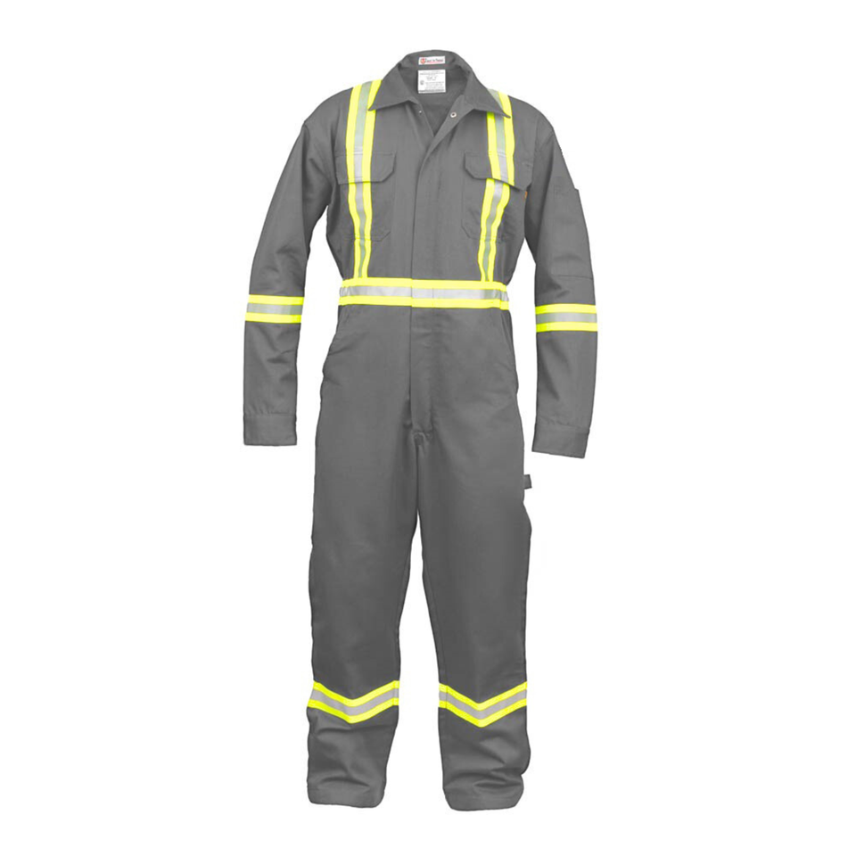 ผ้าคลุมทำงานผ้าฝ้ายสีเทาอ่อน, ผ้าฝ้าย100% 7ออนซ์-แขนยาวปานกลางมีซิปสะท้อนแสงมองเห็นได้ชัดเจน