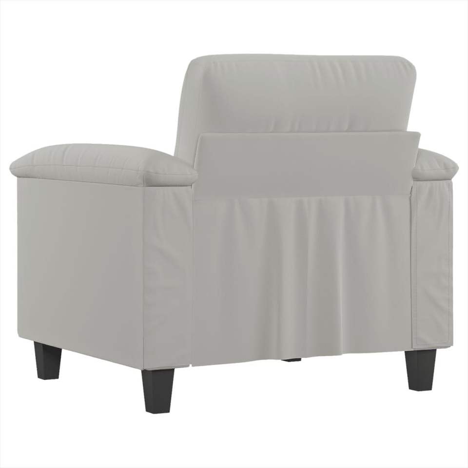 เก้าอี้โซฟาเดี่ยวไมโครไฟเบอร์สีเทาอ่อน ไม้อัดทนทานพร้อมโครงโลหะสำหรับห้องนั่งเล่น