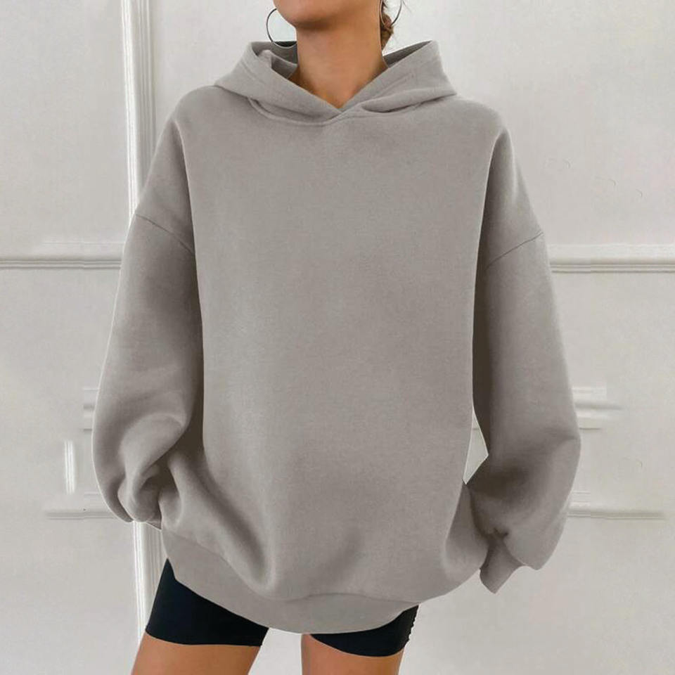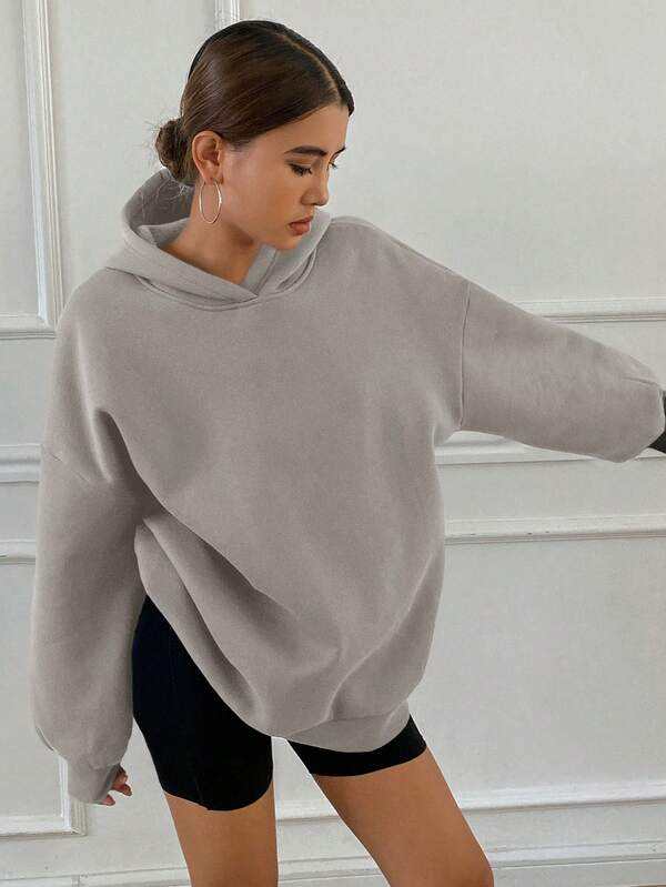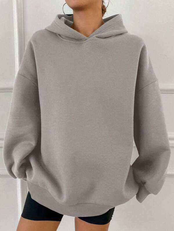เสื้อมีฮู้ดโอเวอร์ไซส์สีเทาอ่อนสำหรับผู้หญิงเสื้อสวมหัวคอตตอนขนแกะทรงหลวมเสื้อสเวตเตอร์เปิดไหล่แขนยาวลำลองฤดูหนาว