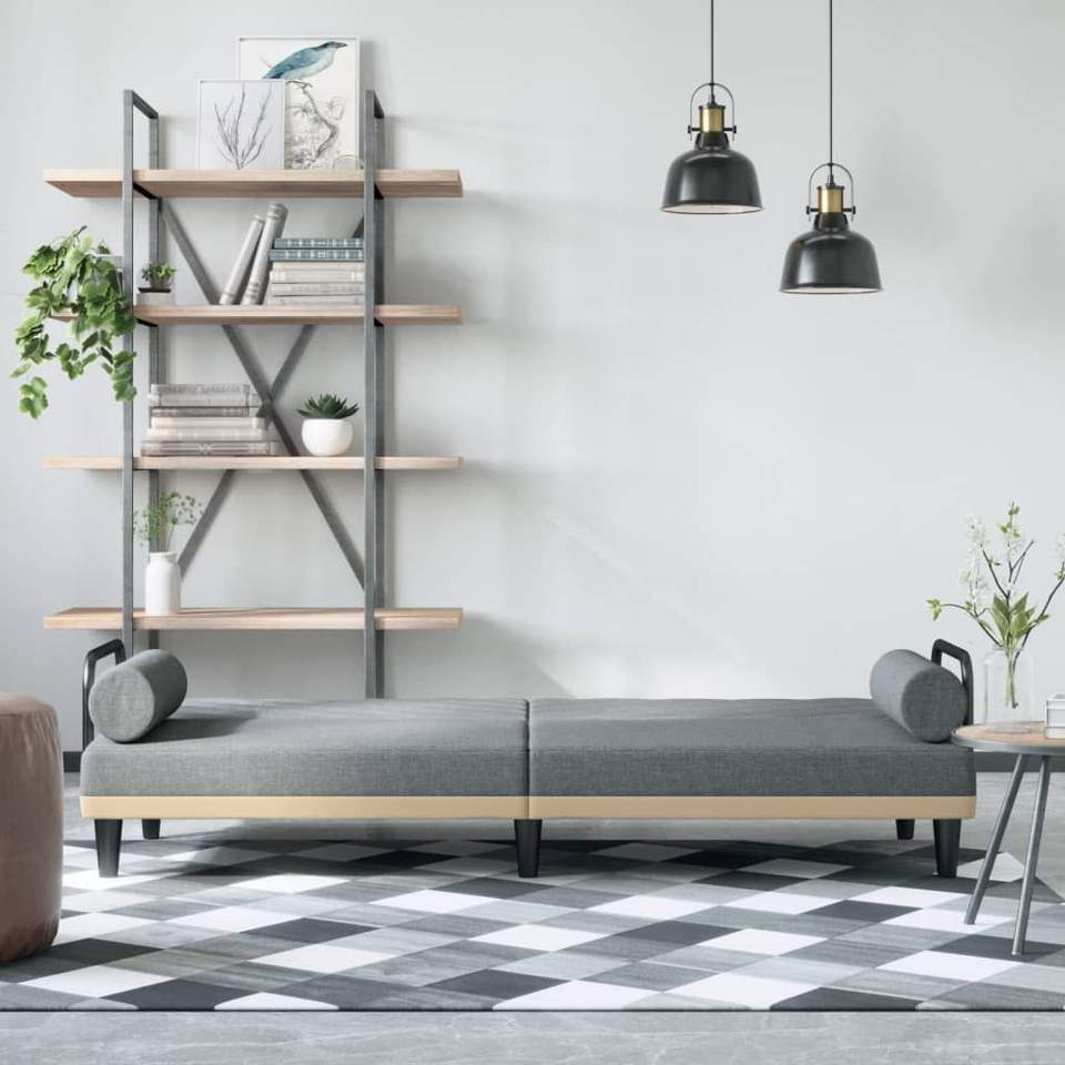 โซฟาเบดขนาดใหญ่สีเทาอ่อน ทำจากโพลีเอสเตอร์ ผลิตจากไม้อัด