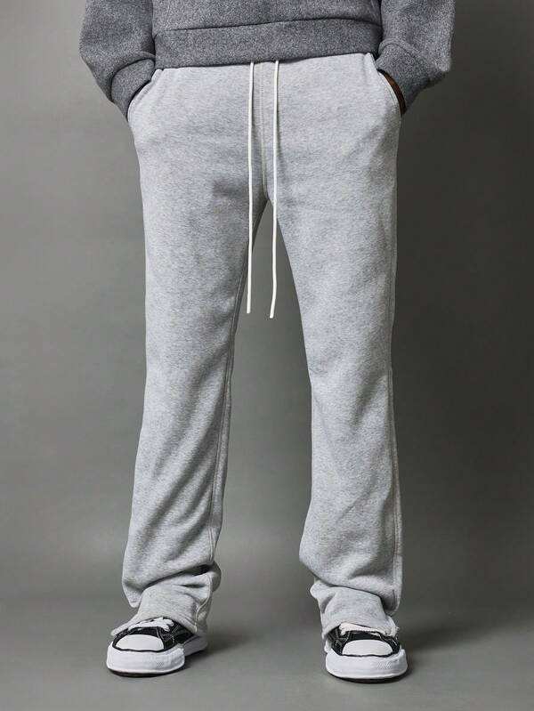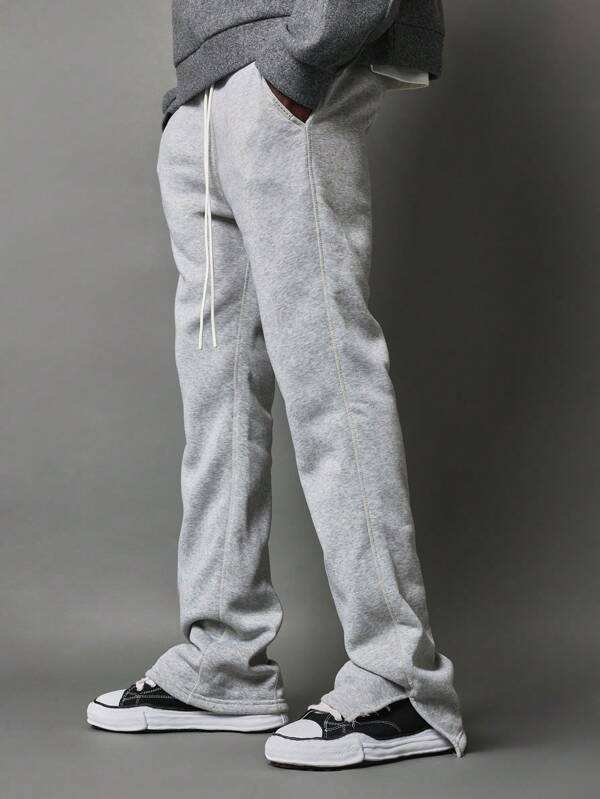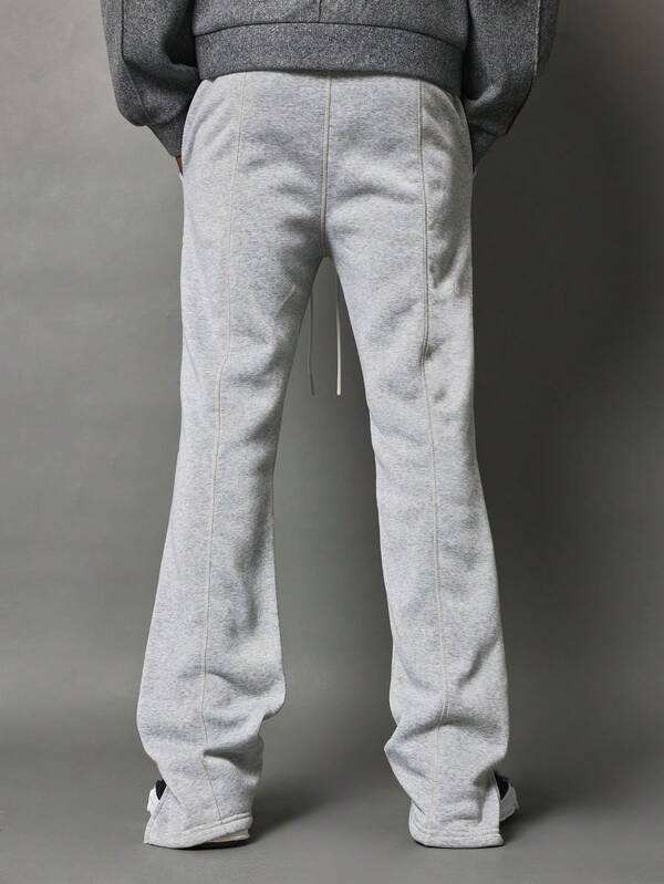 กางเกงวอร์มผ้าลูกฟูกของผู้ชายสีเทาอ่อนแบบเรียงซ้อนกันแนววินเทจซักได้ตามต้องการ