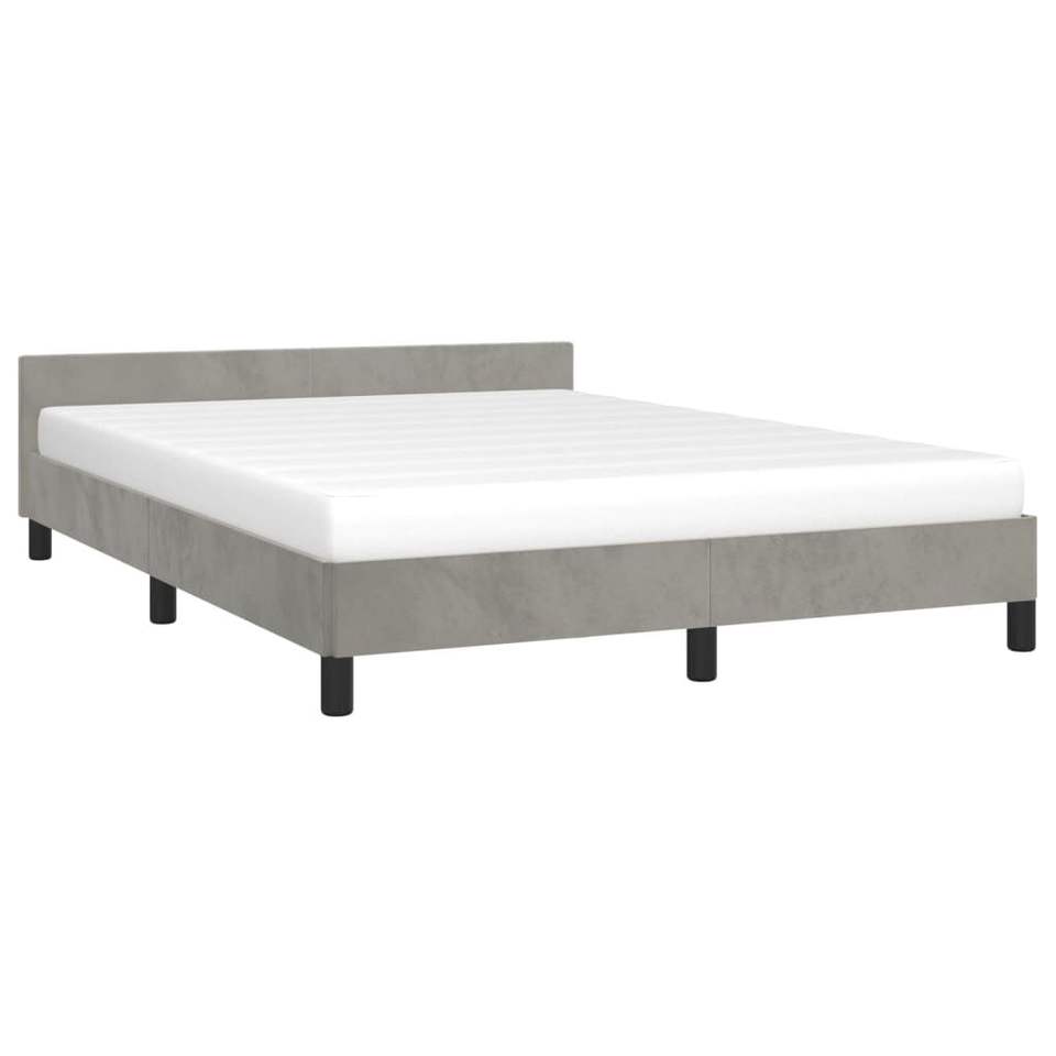 โครงเตียงหุ้มเบาะสีเทาอ่อนพร้อมหัวเตียง
