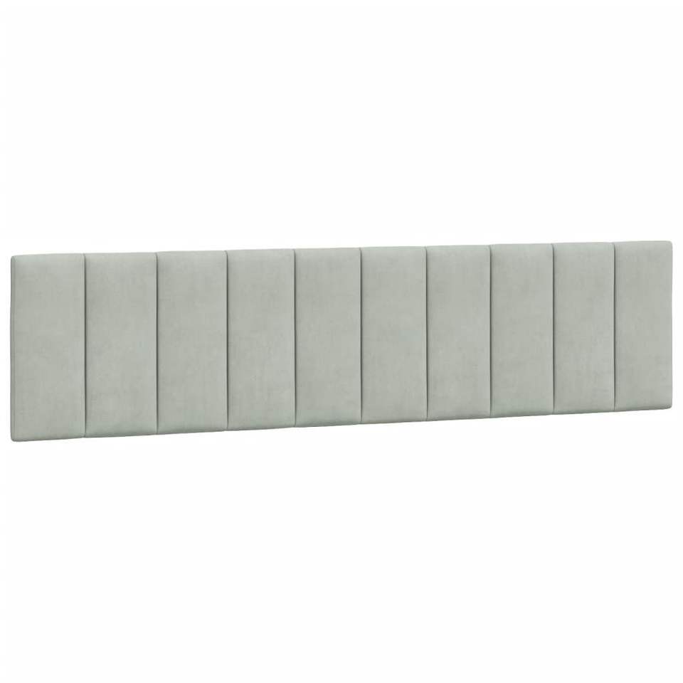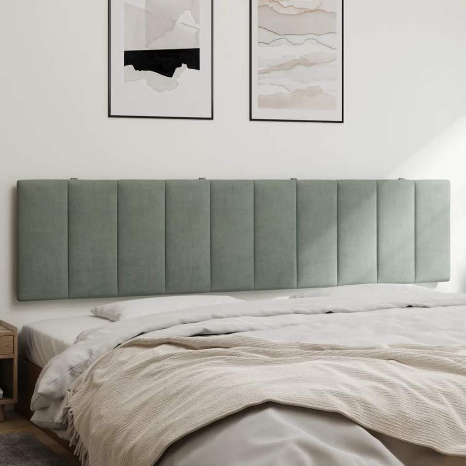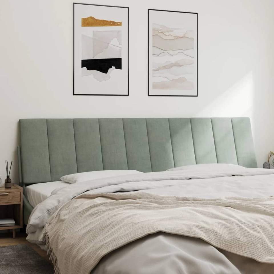 เบาะรองหัวเตียงกำมะหยี่สีเทาอ่อนพร้อมปลอกโฟมถอดได้ขนาด 76 นิ้ว พร้อมหมอนตกแต่งและหมอนอิง