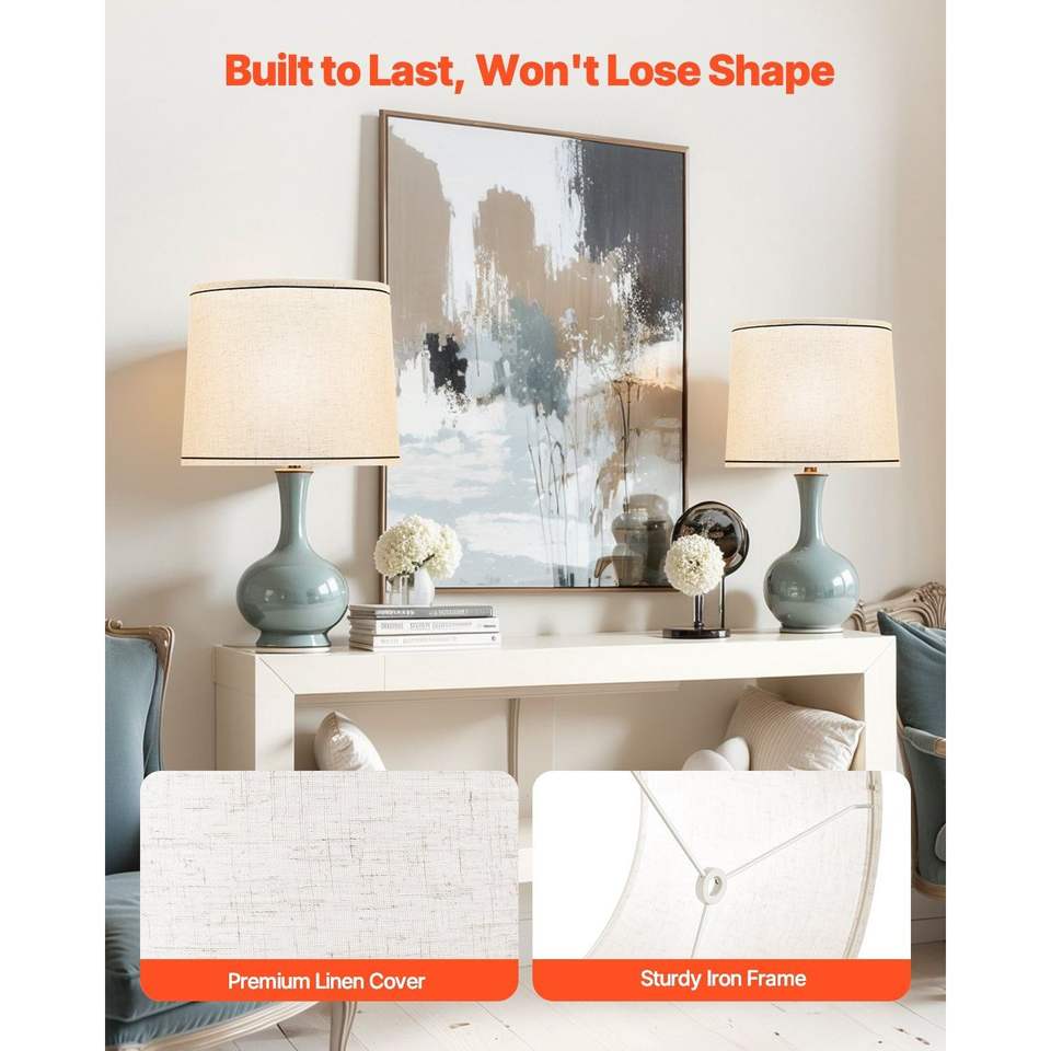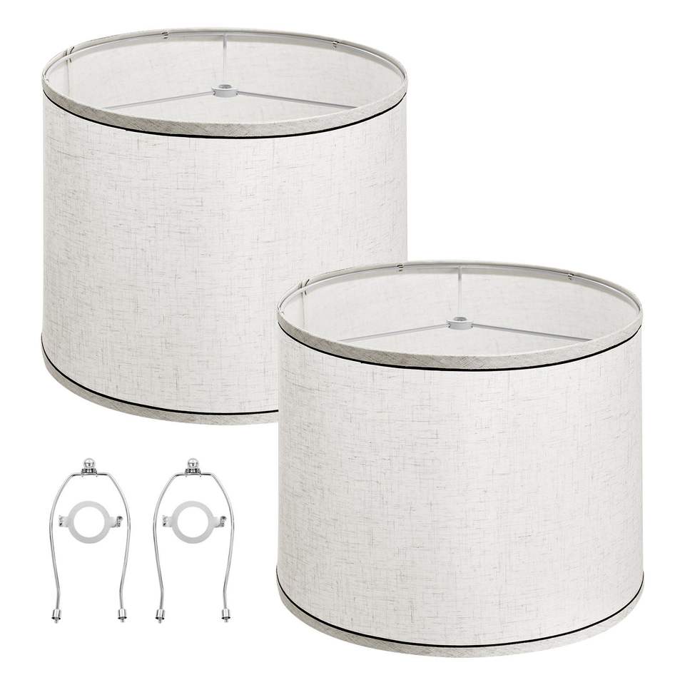 ผ้าลินินอ่อนพร้อมโคมไฟขอบสีดำ2แพ็ค11x13x10นิ้วพร้อมพิณฝาครอบหรูหราสำหรับตกแต่งบ้าน