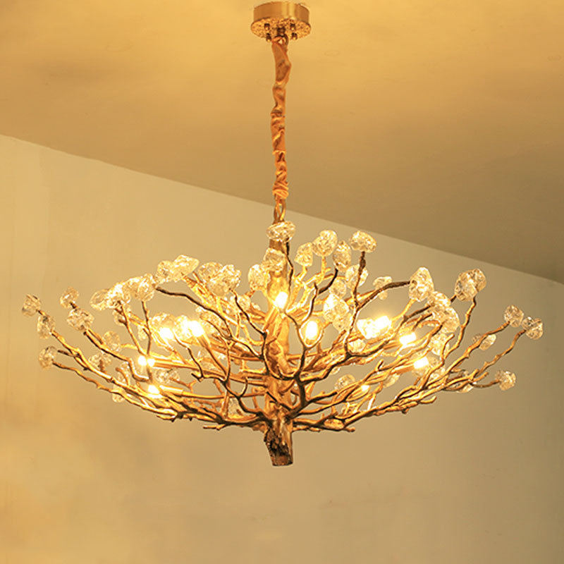 โคมไฟระย้าทองเหลืองทองแดงล้วนหรูหราสำหรับวิลล่าห้องนั่งเล่น