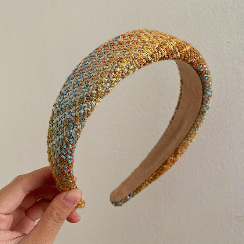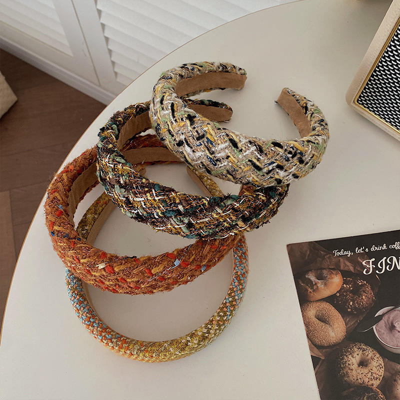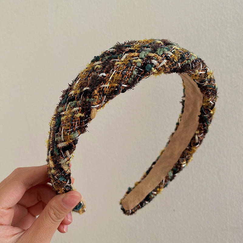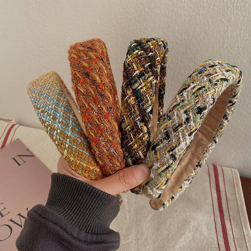 ที่คาดผมสไตล์หรูหราเบาๆ สำหรับฤดูใบไม้ร่วง-ฤดูหนาว ดีไซน์วินเทจ ทันสมัย แบบกว้าง ขายส่ง ผ้าทวีดลายสก็อต เครื่องประดับผม