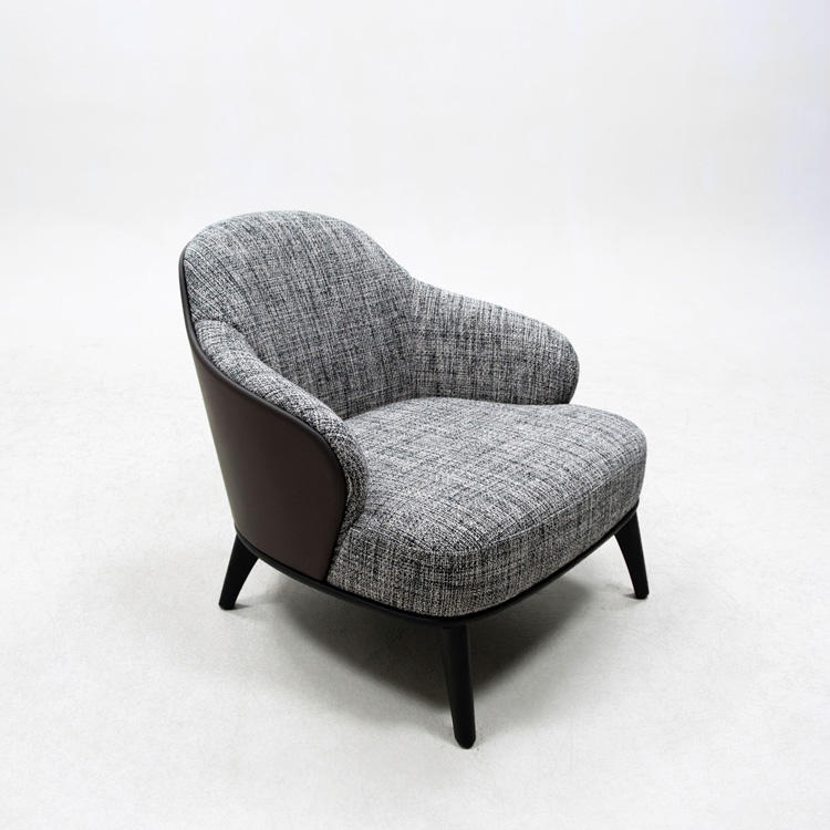 เก้าอี้หรูหราเบาๆ ฐานไม้เนื้อแข็ง เก้าอี้พักผ่อนหุ้มหนังและผ้า โซฟาเดี่ยว สำหรับบ้าน โรงแรม สำนักงาน ห้องนั่งเล่น ขายส่ง