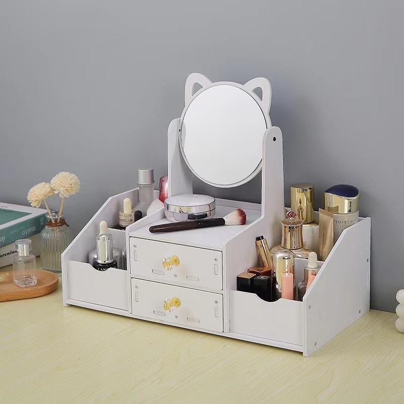 กล่องเก็บเครื่องสำอางแบบลิ้นชักสไตล์หรูหราพร้อมกระจกแต่งหน้า ชั้นวางเครื่องประดับ ชั้นวางผลิตภัณฑ์บำรุงผิวยอดนิยมบนอินเทอร์เน็ต