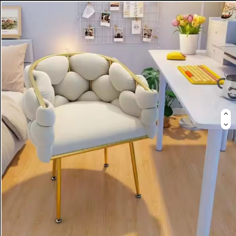 เก้าอี้แต่งหน้าสไตล์ครีมหรูหราเบาๆ พนักพิงเรียบง่าย เก้าอี้โต๊ะเครื่องแป้งสำหรับสาวๆ ห้องนอน ยอดนิยมในอินเทอร์เน็ต เก้าอี้ทานข้าวสไตล์อินส์