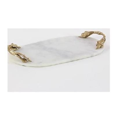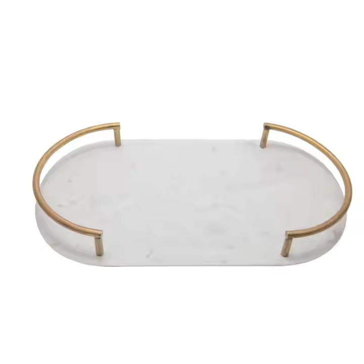 ถาดหินอ่อนทรงรีพร้อมด้ามจับทองเหลืองโบราณสำหรับตกแต่งอย่างหรูหราถาดเสิร์ฟของหวานผลไม้