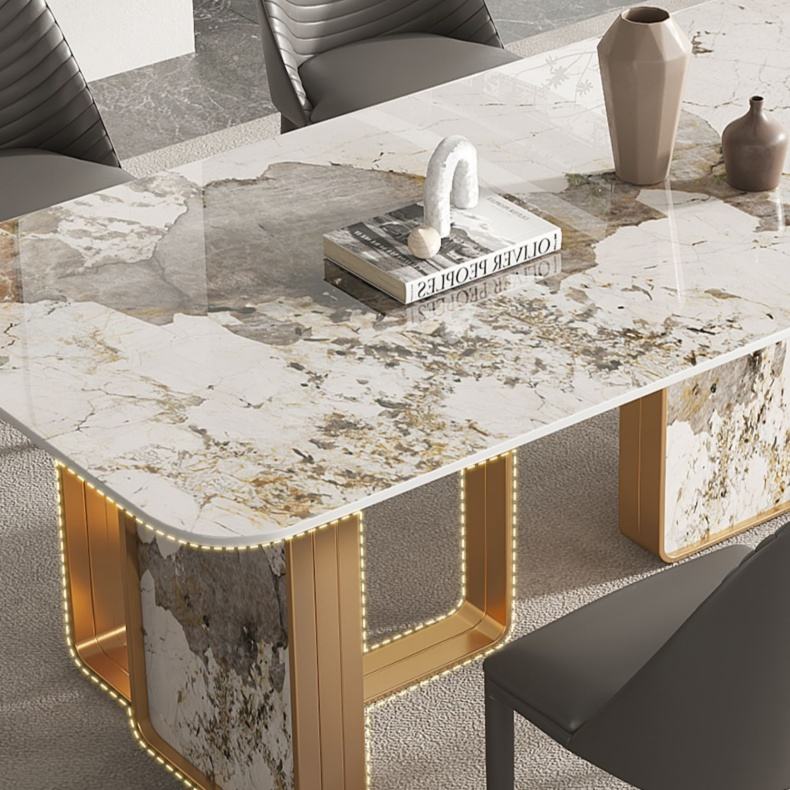 ห้องรับประทานอาหารหรูหราสง่างามน้ำหนักเบาโต๊ะรับประทานอาหารหินเผาเฟอร์นิเจอร์บ้านทันสมัยโต๊ะรับประทานอาหารสำหรับวิลล่า