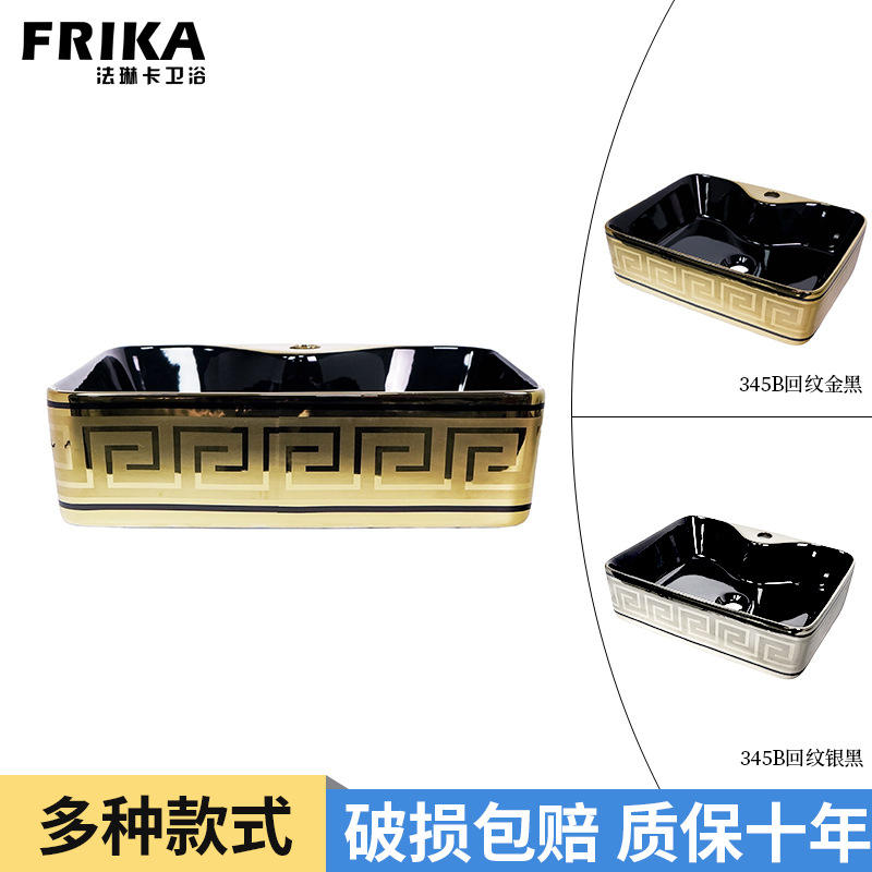 อ่างล้างหน้าเซรามิกสีทองดำแบบหรูหรา วัสดุหิน ทรงสี่เหลี่ยม ดีไซน์ทันสมัย สำหรับห้องน้ำเดี่ยว ห้องสุขา หรือระเบียง