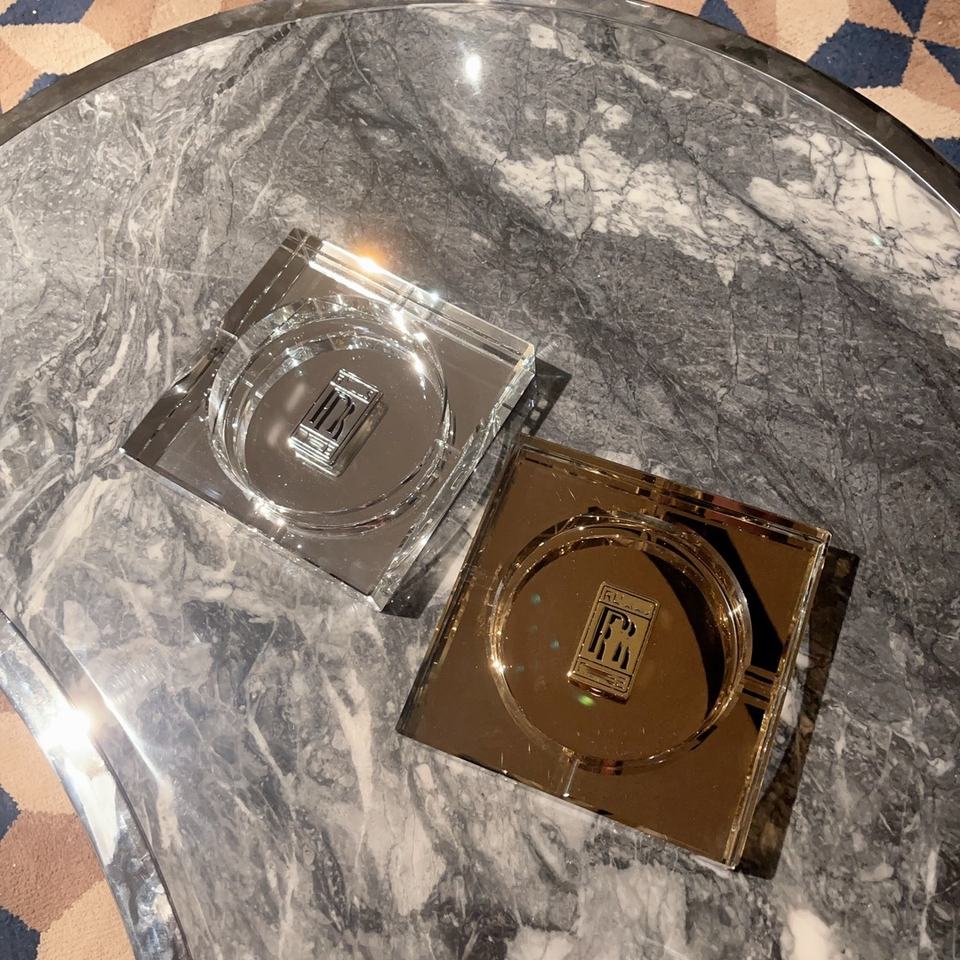 ที่เขี่ยบุหรี่แบบอเมริกันสไตล์หรูหราสีทอง คริสตัลใสไร้ควัน สำหรับใช้ในบ้าน วางบนโต๊ะกาแฟ