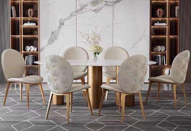 เก้าอี้รับประทานอาหารระดับไฮเอนด์หรูหราเบาเก้าอี้ลายใบไม้จากอิตาลีกระเป๋านุ่มเก้าอี้ตั้งโต๊ะสำหรับครอบครัวขนาดเล็กด้านหลัง