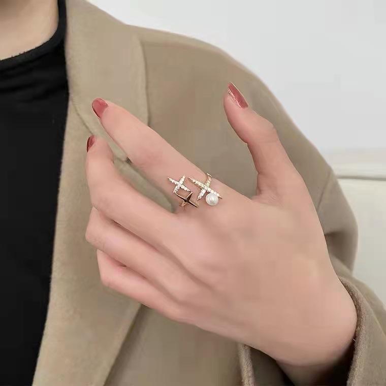 แหวนไข่มุกน้ำจืดสุดหรูพร้อมเครื่องประดับรูปดาวแหวนแฟชั่นสไตล์เรียบง่ายทำจากอินเทอร์เน็ตของคนดัง