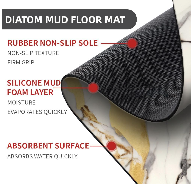 พรมปูพื้นห้องน้ำในครัวทำจากโพลีเอสเตอร์กันลื่นแห้งเร็วต้านจุลชีพเป็นมิตรกับสิ่งแวดล้อมน้ำหนักเบา