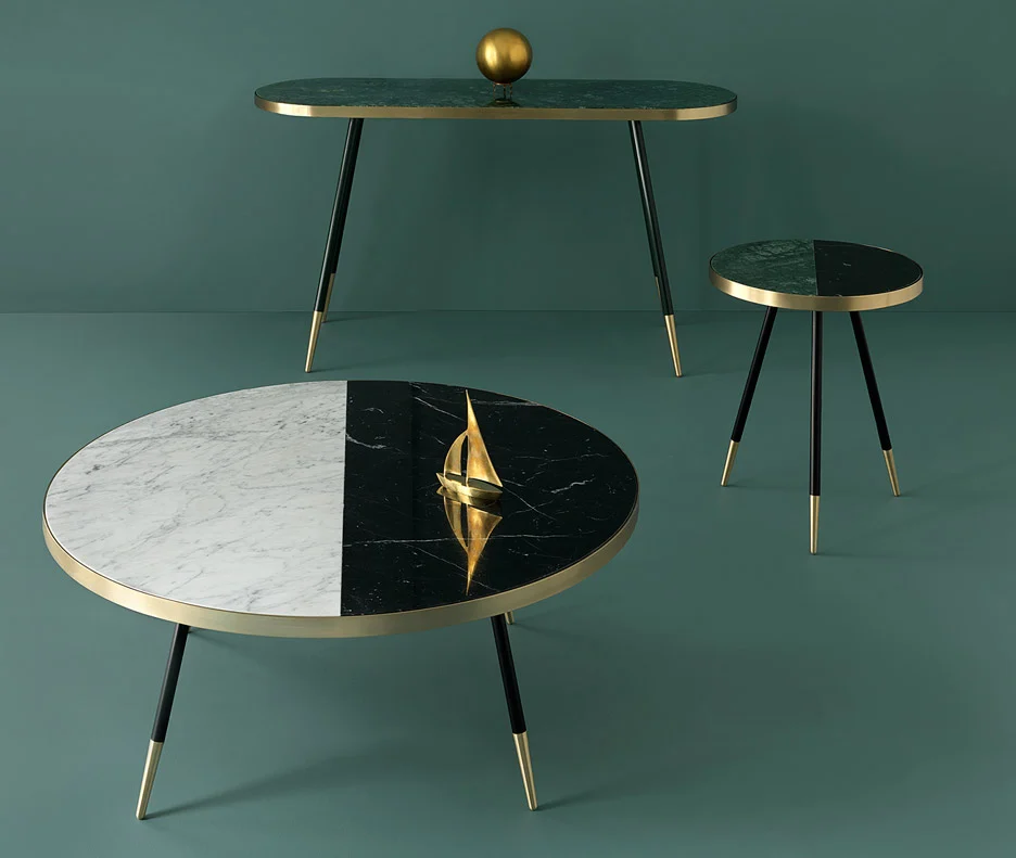 โต๊ะกาแฟหนังรูปทรงถ้วยหินอ่อนหรูหราเบาชุดโต๊ะข้างโซฟาที่ทันสมัยสําหรับเฟอร์นิเจอร์ห้องนั่งเล่น