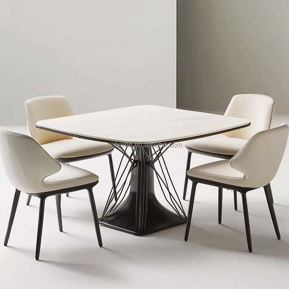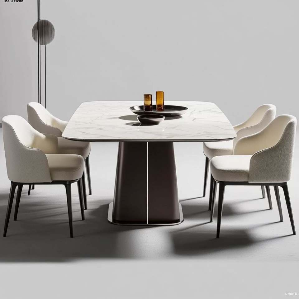 โต๊ะอาหารหินอ่อนทรงสี่เหลี่ยมมุมฉากสุดสร้างสรรค์ดีไซน์หรูหราทันสมัยเรียบง่ายทันสมัย