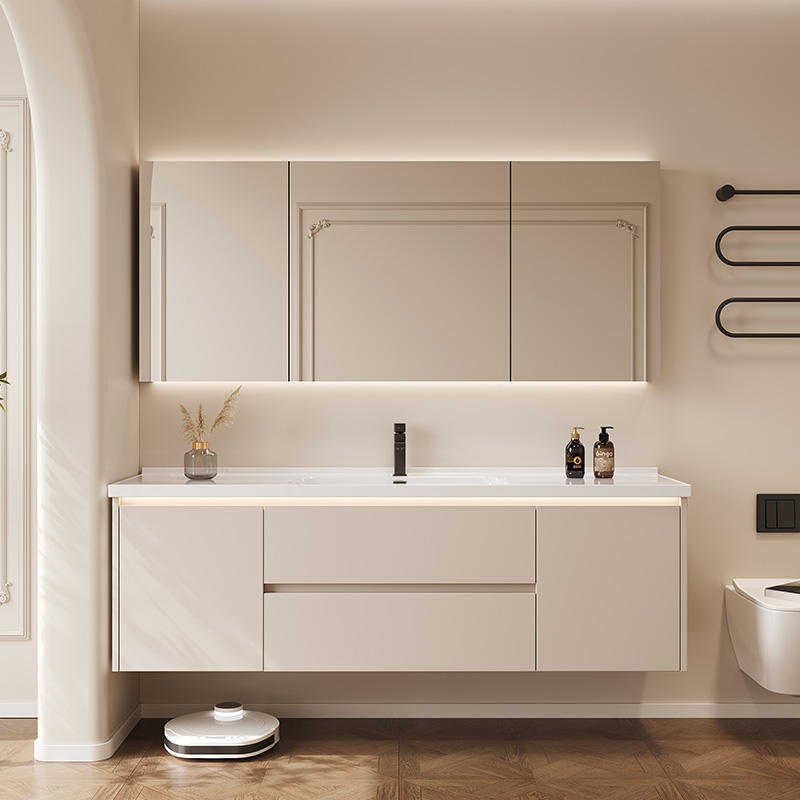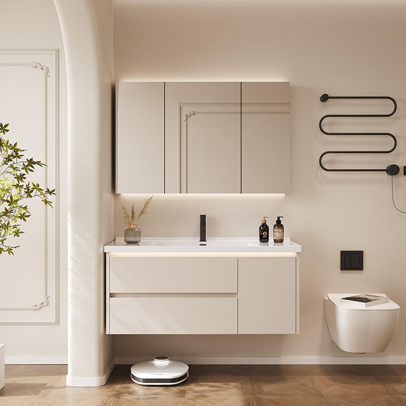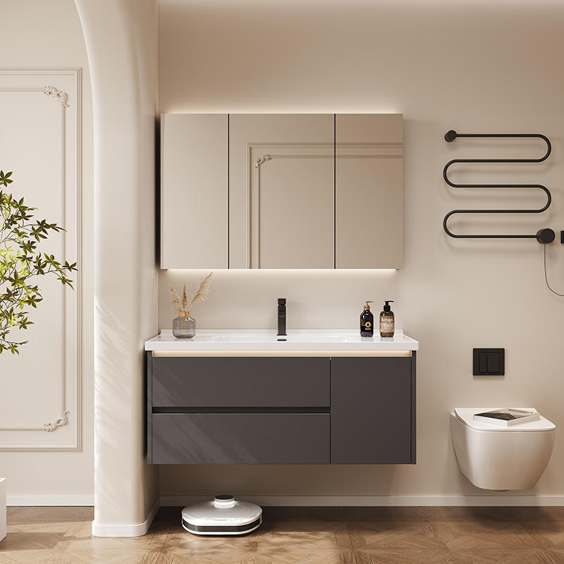 ตู้ห้องน้ำดีไซน์หรูหราทันสมัย ป้องกันน้ำได้ พร้อมกระจก LED โมโนโครม แสงสว่างสวยงาม โครงสร้างทำจาก MDF และเมลามีน