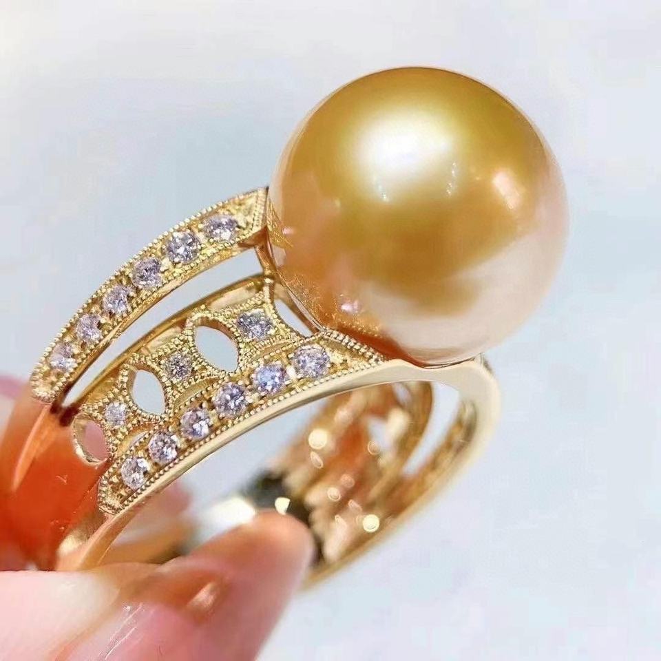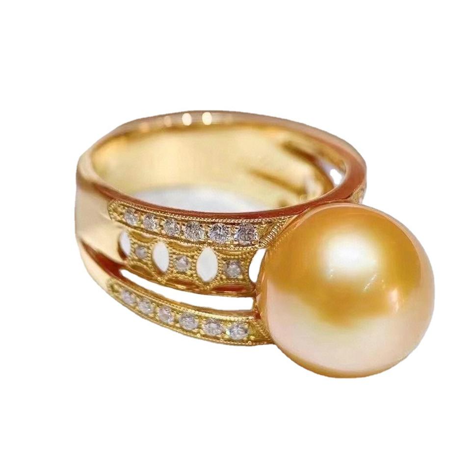 แหวนเงินแท้ S925 ประดับมุกธรรมชาติทรงกลม 12-11 มม. สไตล์หรูหราเบาๆ ดีไซน์เปิดปรับขนาดได้ โรแมนติก ใช้งานได้หลากหลาย
