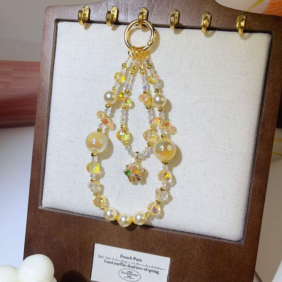 สายคล้องโทรศัพท์ประดับคริสตัลฟอยล์สีทองสไตล์หรูหราพร้อมสายห้อยติดข้อมือแบบสั้นพร้อมจี้มิกกี้แฟชั่น