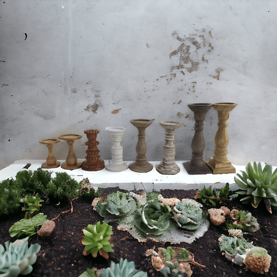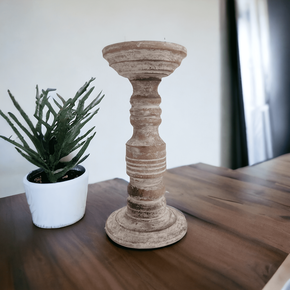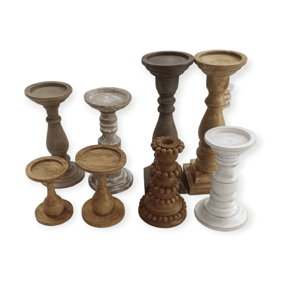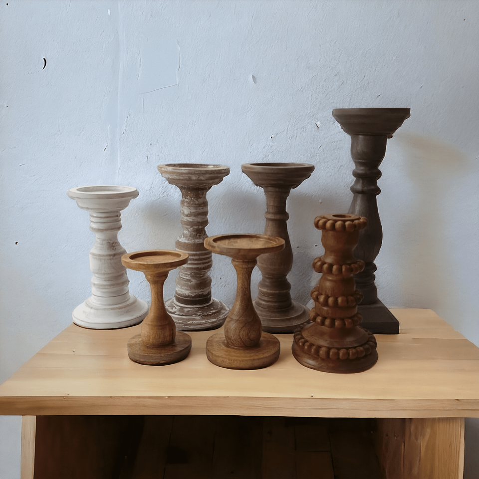 เชิงเทียนไม้มะม่วงแบบโบราณสีน้ำตาลอ่อนทำด้วยมือเป็นมิตรต่อสิ่งแวดล้อมของตกแต่งสวนบ้านคริสมาสต์งานแต่งงาน