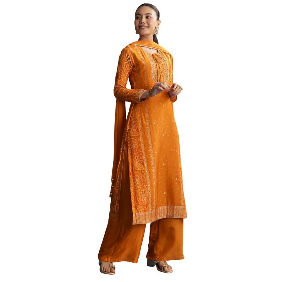 Light Orange Silk Bandhani Palazzo Suit With Embroidery Wholesale Women Ethnic Apparel OEM Clothing Factory Bulk Supplier
