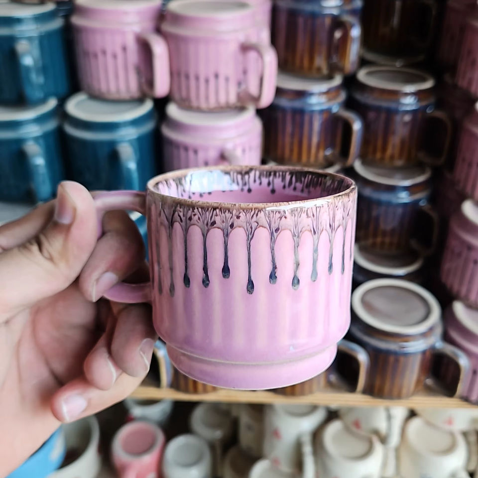 แก้วกาแฟสีชมพูอ่อนพร้อมดรอปสีน้ำตาลแก้วเซรามิกสำหรับตกแต่งบ้านและบ้านสำหรับแฟนของตกแต่งบ้านและสำนักงาน1ชิ้น