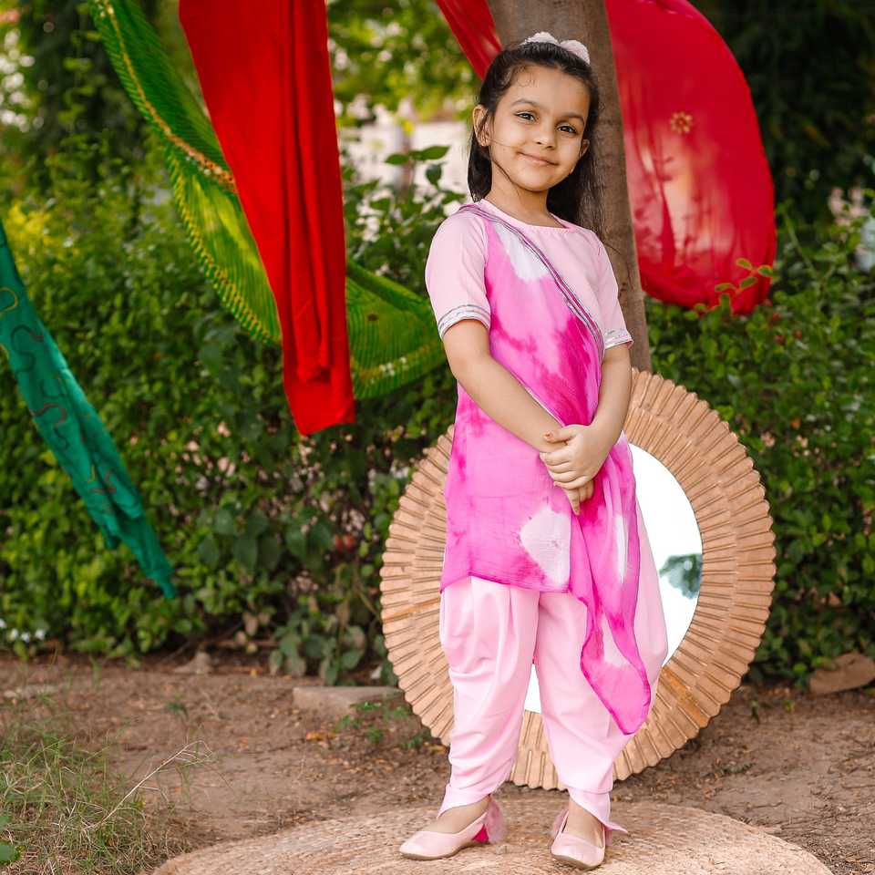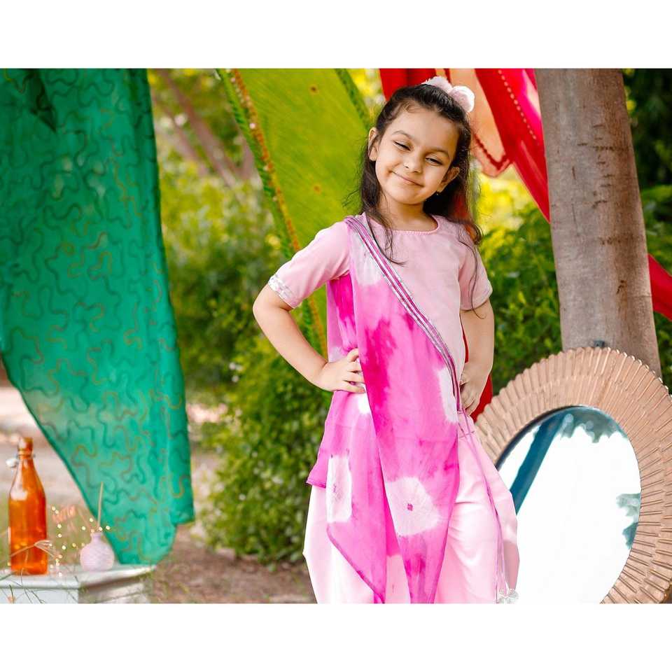 ชุดโดทีผ้าฝ้ายสีชมพูอ่อนพร้อมผ้าคลุม