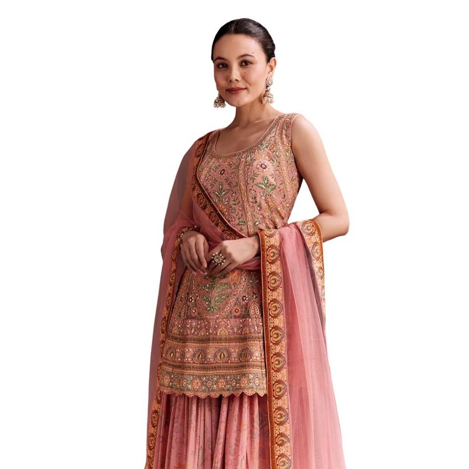 ชุดพาลาซโซปักลายสีชมพูอ่อนเสื้อผ้าพื้นเมืองสำหรับผู้หญิงชุดปาร์ตี้งานแต่งงานออกแบบได้ตามต้องการ