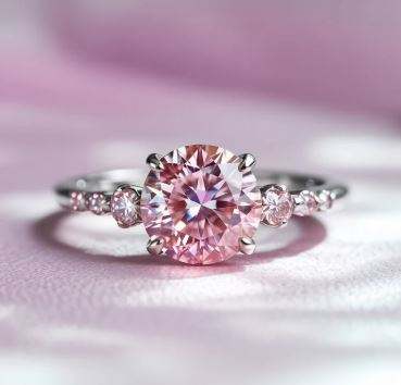 แหวนมอสซาไนต์สีชมพูอ่อนในตัวเรือนเงินแท้ 925 ดีไซน์หรูหราสง่างาม แหวนพลอยสีชมพูอ่อนสำหรับงานหมั้นและงานแต่งงานสำหรับผู้หญิง