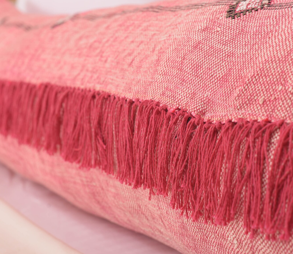 Sabra บริสุทธิ์ของโมร็อกโกสีชมพูอ่อนหมอนตกแต่งแบบแอบสแตรกหมอนทำด้วยมือไหมกระบองเพชรวินเทจ