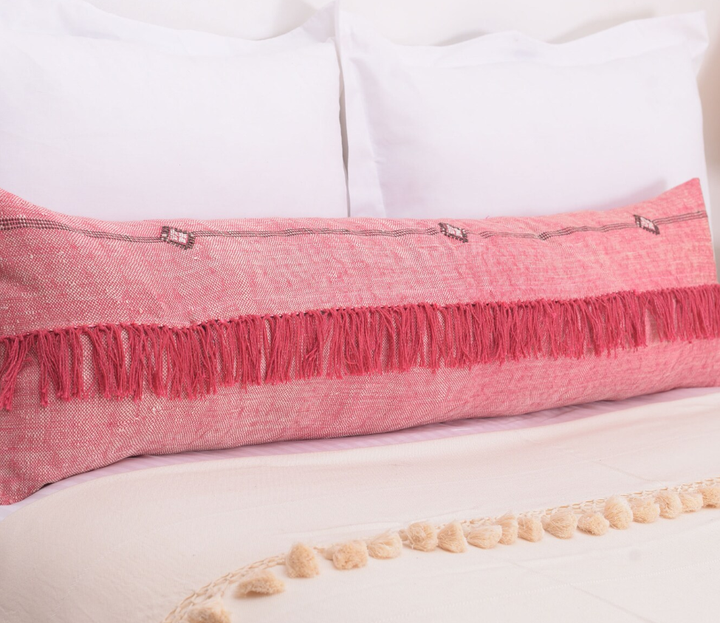 ที่คลุมหมอนรองเอวผ้าไหมกระบองเพชรพู่ยาวสีชมพูอ่อน