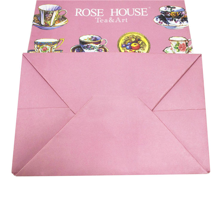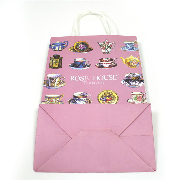 ถุงกระดาษสีชมพูพิมพ์ลายหลากสีถุงช้อปปิ้งถุงใส่อาหารกลางวันสำหรับตกแต่ง