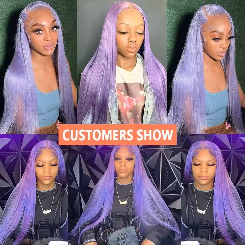 วิกผมลูกไม้สีม่วงอ่อนแบบโปร่งใส HD ลอนลึก วิกผมแท้จากผมมนุษย์ วิกผมบราซิลเลียนเวอร์จิ้นแฮร์ สำหรับผู้หญิงผิวดำ ขนาด 8-40 นิ้ว
