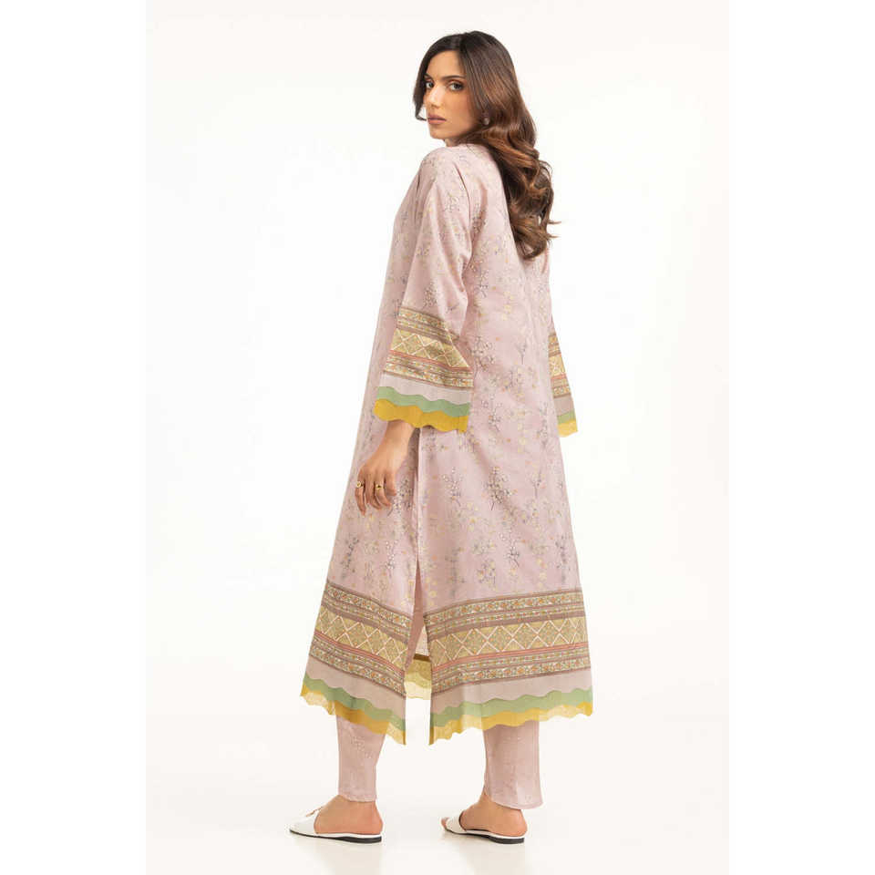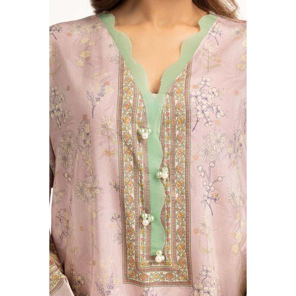 ชุดเซ็ตผ้าเครปพิมพ์ลายแจ็คการ์ดสีม่วงอ่อนสำหรับผู้หญิง เสื้อแขนสามส่วน ไซส์ XS สำหรับฤดูใบไม้ผลิ/ฤดูร้อน