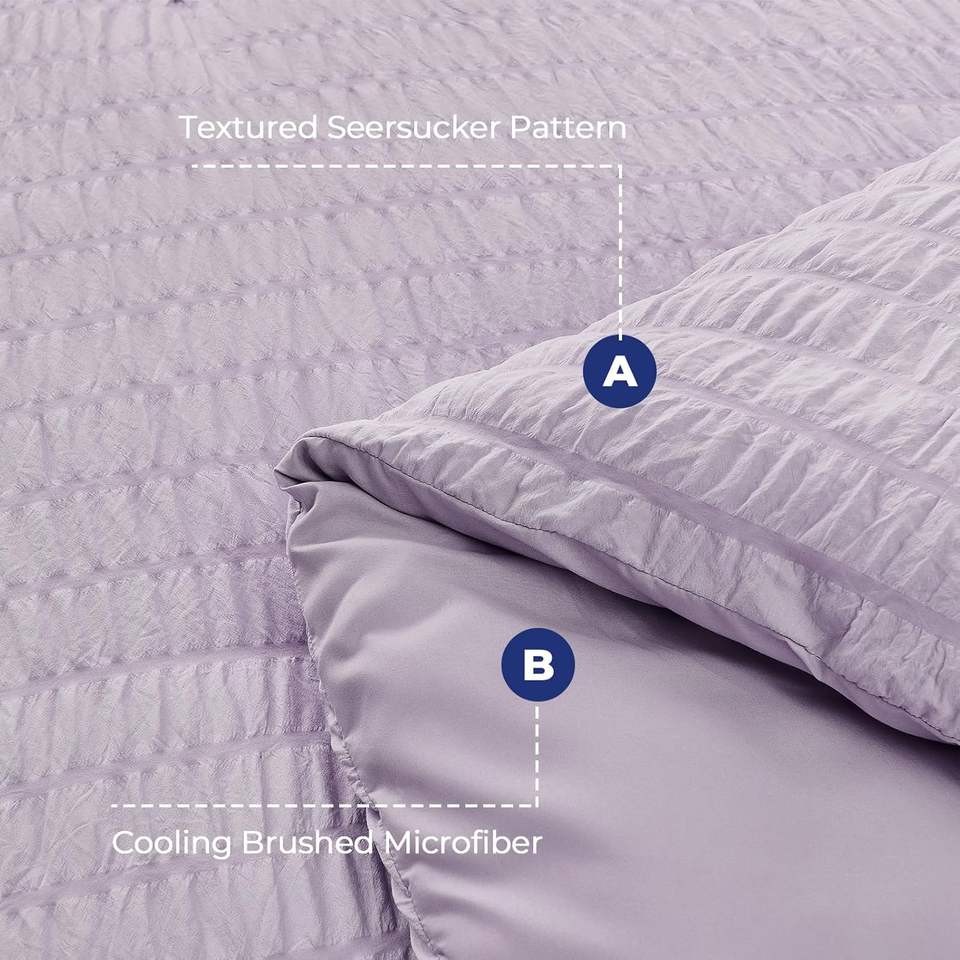 ชุดผ้าปูเตียงควีนไซส์สีม่วงอ่อน Seersucker ชุดเครื่องนอน7ชิ้นสำหรับทุกฤดูกาลพร้อมปลอกหมอนผ้าปูที่นอน