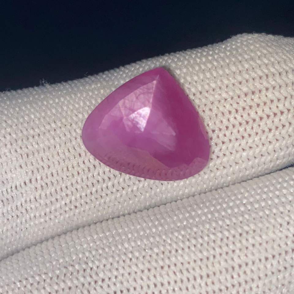 พลอยทับทิมสีแดงอ่อนทรงหัวใจธรรมชาติ น้ำหนัก 11.50 กะรัต จาก SHRI KRISHNA ASHIRWAD GEMS