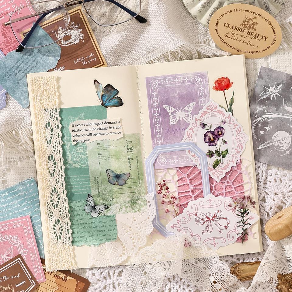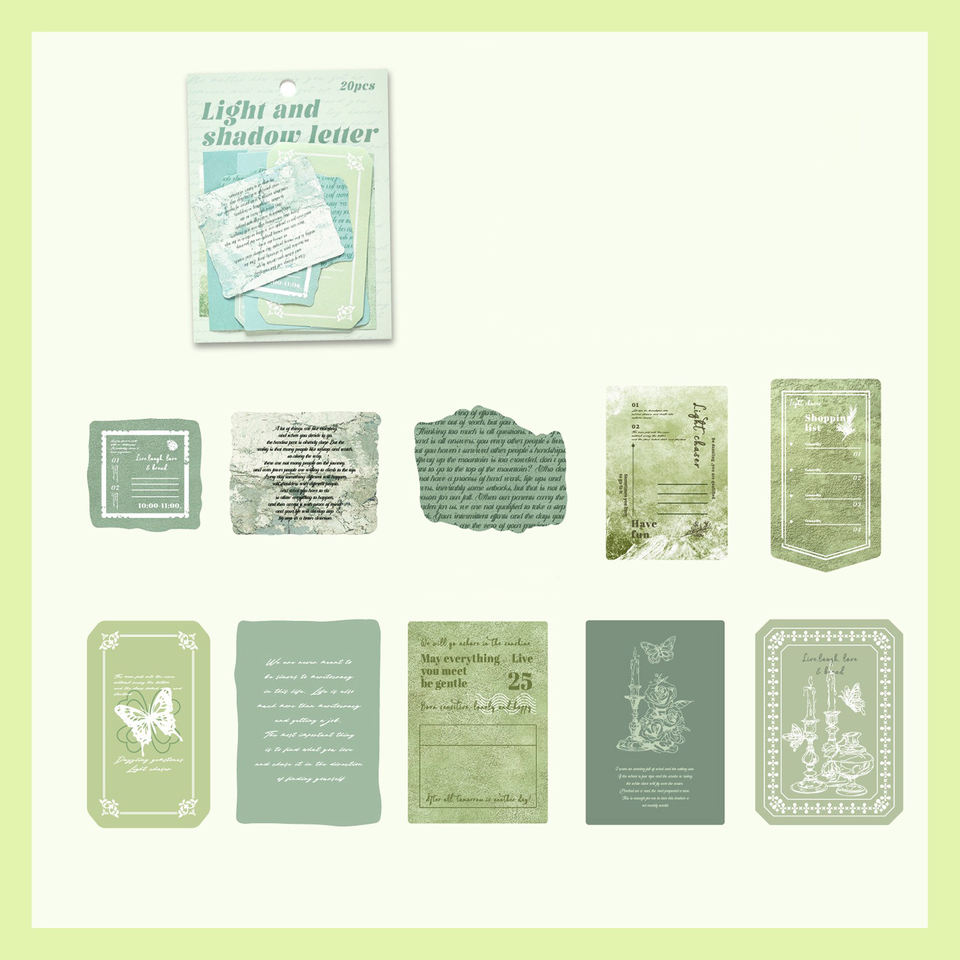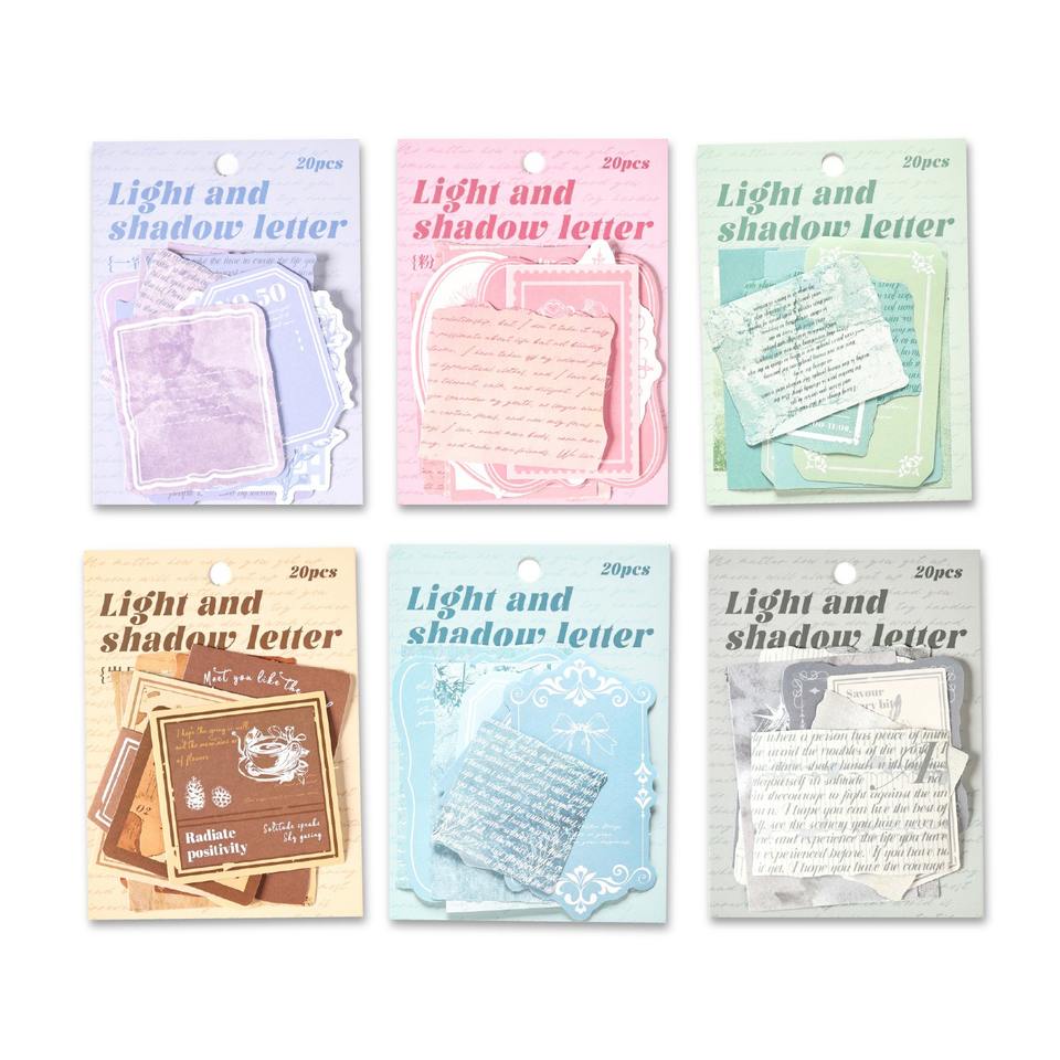 สติกเกอร์ตกแต่งพิมพ์ลายแบบมันเงา ตัดแบบไดคัท ลายเรโทร ซีรีส์ Light Shadow Note แบบมีกาวในตัว - 20 แผ่น ชุดตกแต่งวันหยุด