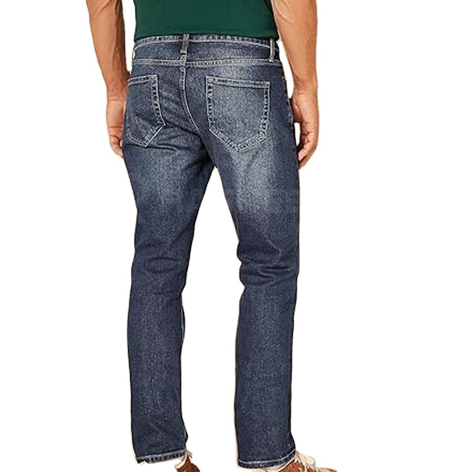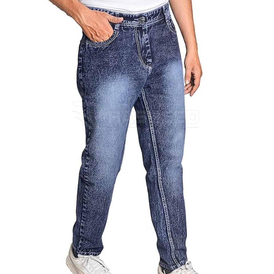 กางเกงยีนส์ขาตรงสำหรับผู้ชายกางเกงผ้ายีนส์ฟอกสีอ่อนทำจากผ้าฝ้ายออกแบบได้ตามต้องการ
