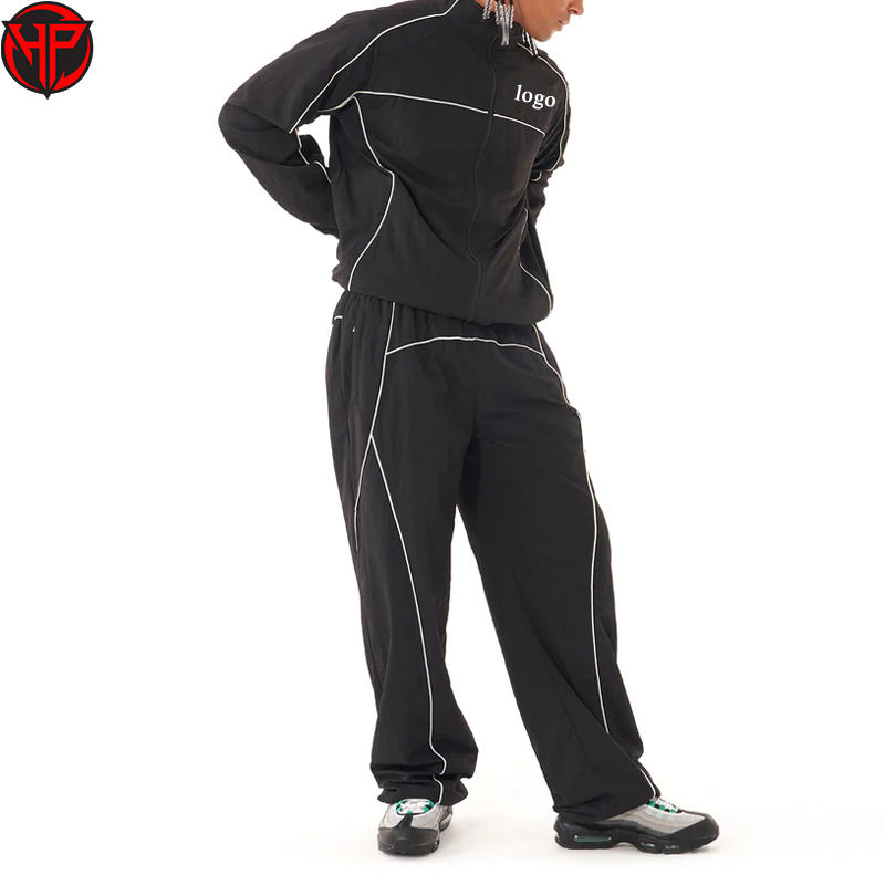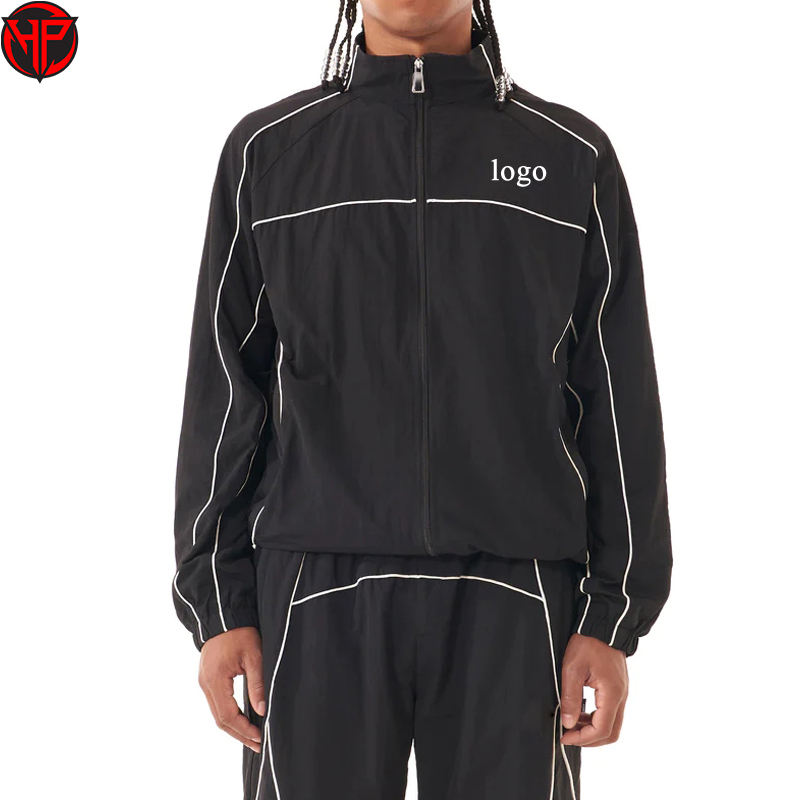 ชุดวอร์มผ้าไนลอนสะท้อนแสงสำหรับผู้ชายชุดออกกำลังกายผ้าโพลีเอสเตอร์100% น้ำหนักเบามีซิปรูด